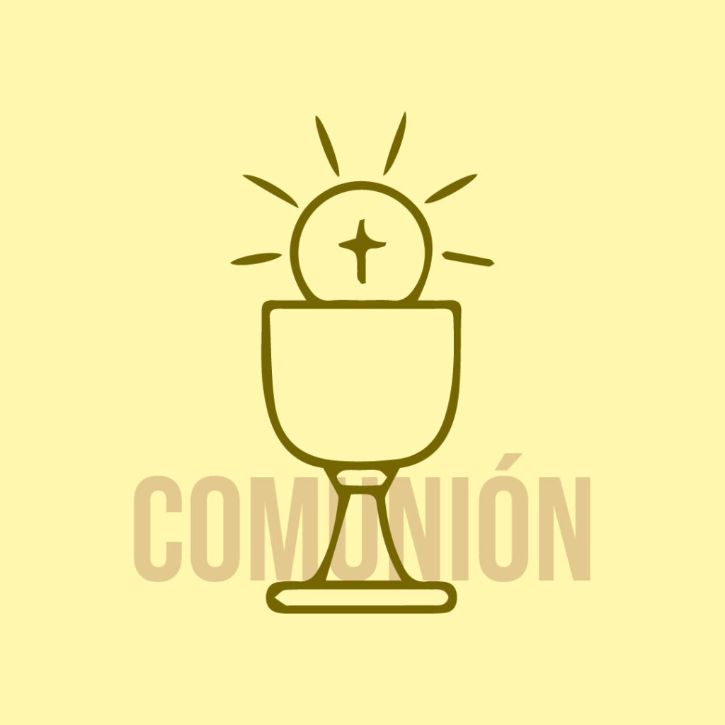 La Primera Comunión es la celebración de la Iglesia Católica donde el niño y la niña participan por primera vez en el Sacramento de la Eucaristía, recibiendo la Comunión. La Sagrada Comunión es la presencia de Jesucristo en la Eucaristía, donde le recibimos sacramentado bajo las especies del pan y del vino.